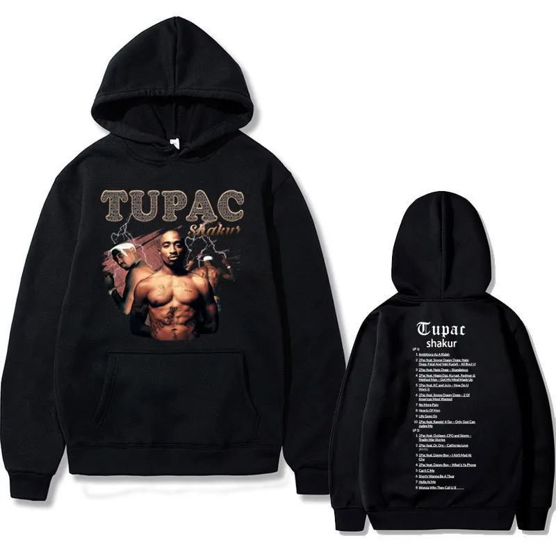 Tupac 2Pac Rapper Hip Hop Hoodie Men’s Fashion Long Sleeve round Neck Printed Casual Polyester Sweatshirt Streetwear